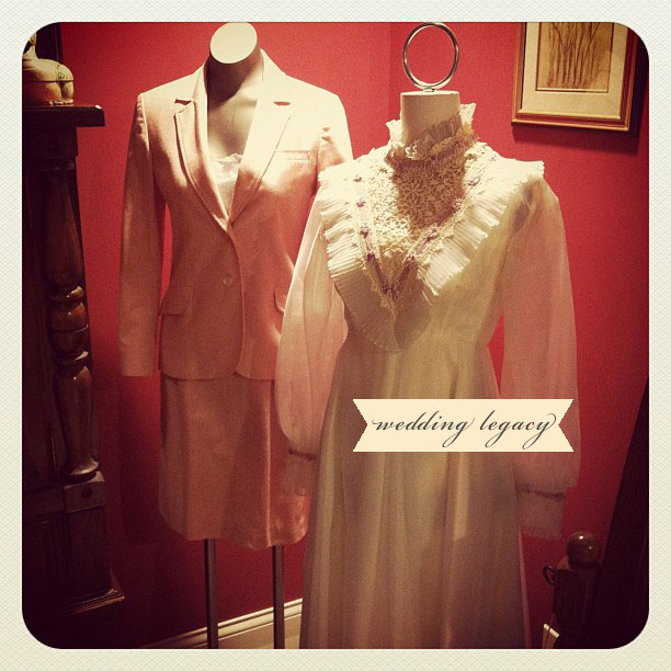 So I will never be disappointed if someone decides to rip apart her old dress, just leave the suit please. But it makes me laugh at how much your fashion tastes can change over the years. My mother's two wedding wardrobes can speak to that.